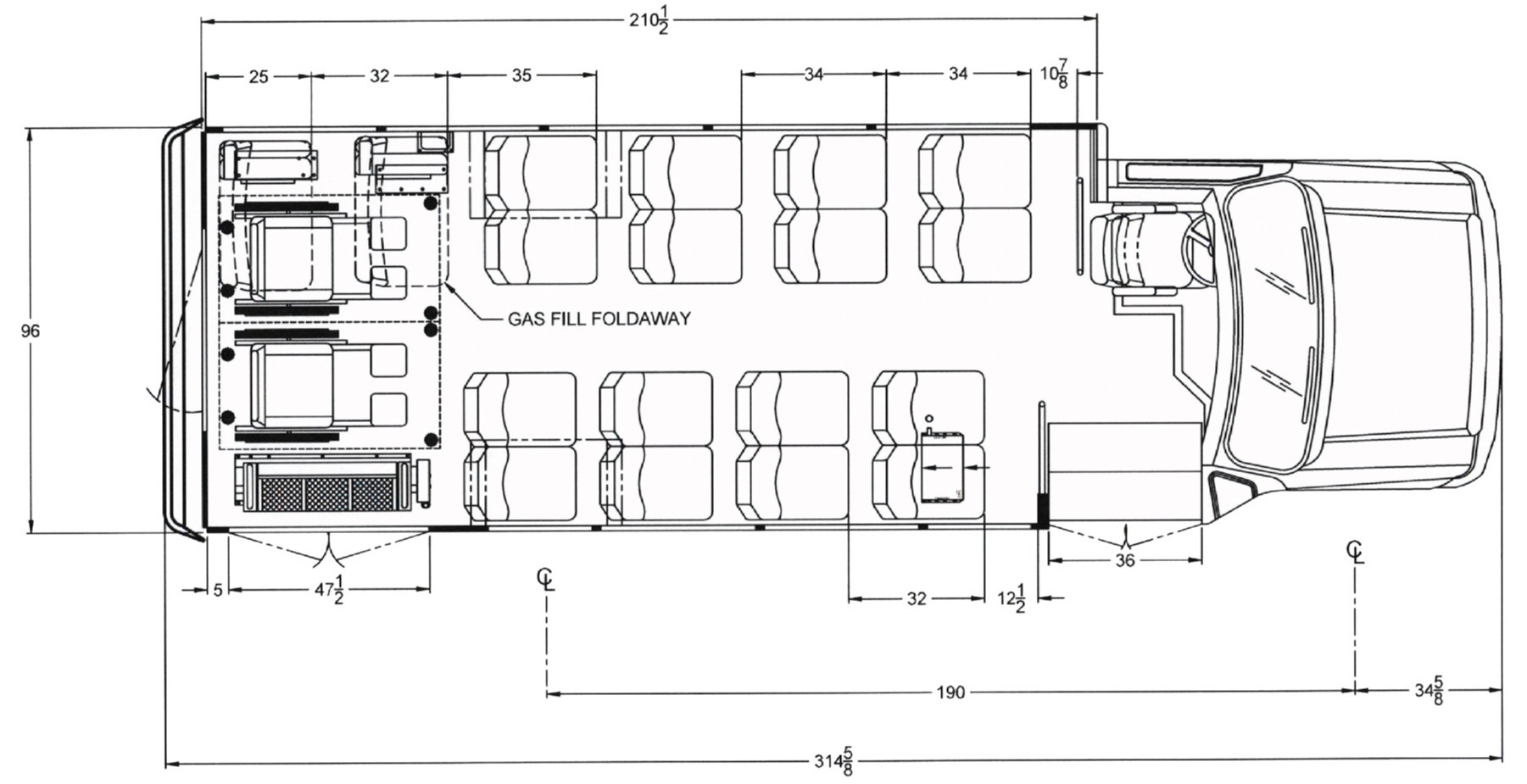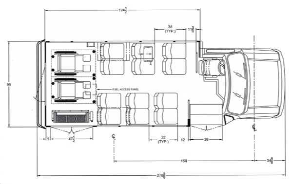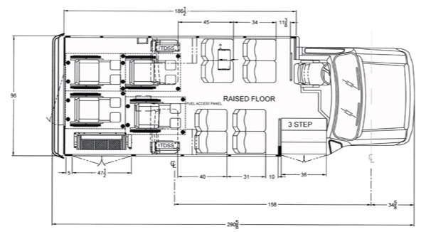 | Wheelbase | 158" / 176" / 190" |